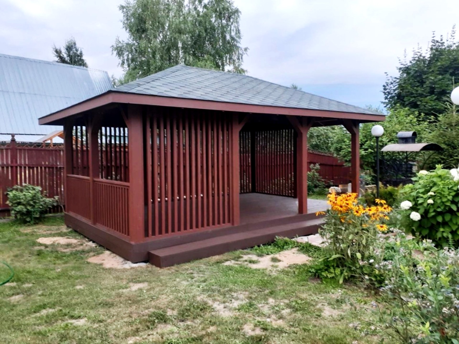 Если вы принадлежите к числу людей, которые уже давно решили «Куплю беседку», но все никак не могли приблизиться к реализации своей цели в силу финансовых причин либо просто не могли найти подходящий для своего приусадебного участка вариант, компания «ПСК Гончаренко» поможет вам с решением данной проблемы. Представленное строение будет превосходным приобретением для всех, кто любит отдыхать на свежем воздухе в компании родных или близких друзей. Если вам понравилась данная беседка, но данные размеры являются неприемлемыми для вас – не беда, наши специалисты могут изготовить беседку, которая полностью вас устроит.