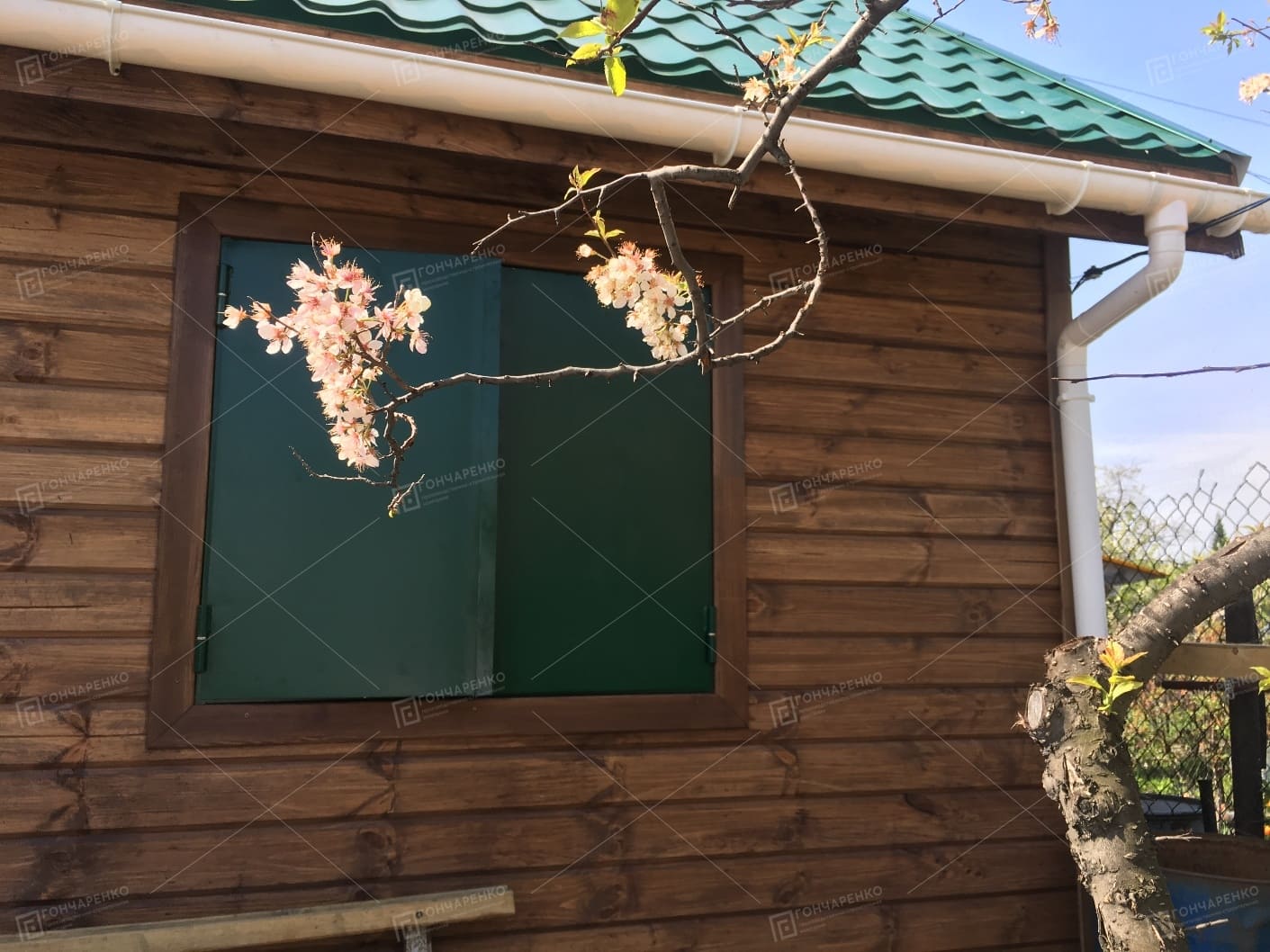 Металлочерепица, цвет на выбор. Каркас – брус, обработан огнебиозащитным составом. Доска, ветрогидрозащитная мембрана. Подфасадная вентиляция. |
