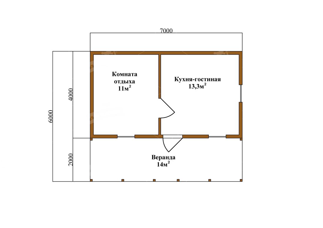 Дом под ключ с верандой всегда выглядит привлекательно и идеально подойдет для небольших участков. Однако он еще и функционален. Крыльцо защитит вас в непогоду, пока вы будете открывать дверь. Кроме того, на крылечке можно оставлять обувь или красиво расставить горшки с цветами. Сам дом имеет большую комнату для отдыха и кухню столовую. Это очень удобная планировка. При желании можно будет зонировать пространство.