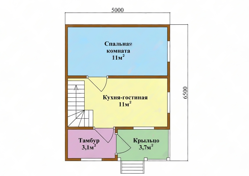 Дом под ключ с верандой всегда выглядит привлекательно и идеально подойдет для небольших участков. Однако он еще и функционален. Крыльцо защитит вас в непогоду, пока вы будете открывать дверь. Кроме того, на крылечке можно оставлять обувь или красиво расставить горшки с цветами. Сам дом имеет большую комнату для отдыха и кухню столовую. Это очень удобная планировка. При желании можно будет зонировать пространство.