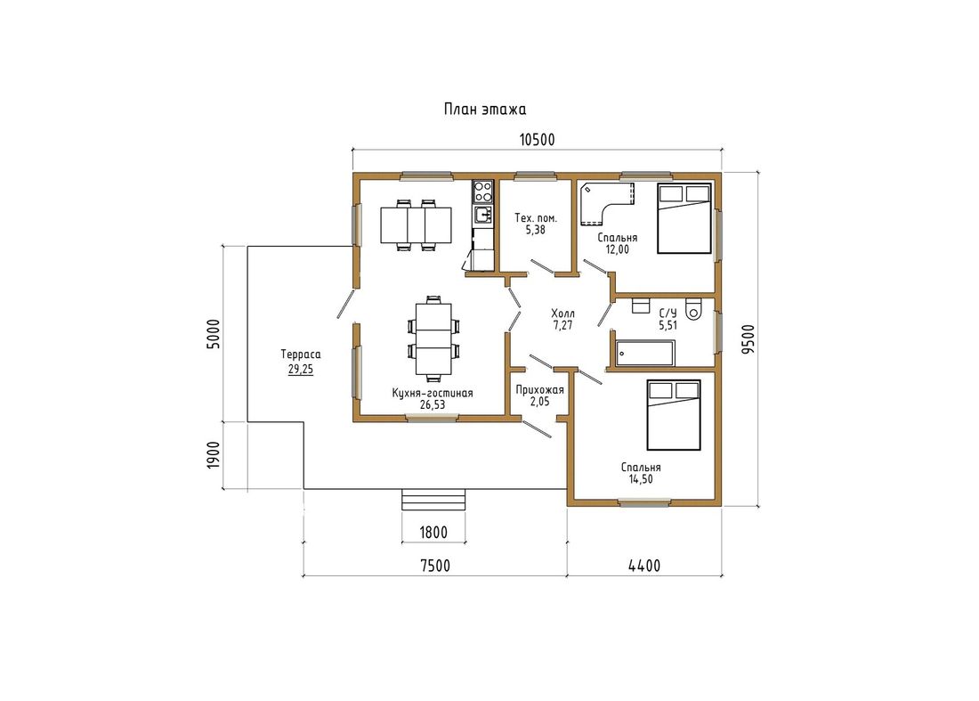 Это прекрасный вариант дома под ключ в Челябинске в черновой отделке, для дружной семьи. Он эффективно использует пространство. Стильный внешний вид дома, делает его крайне привлекательным. Внутри дома достаточно много пространства. Оно организованно очень грамотно. Размеры кухни позволят поставить в ней полноценный гарнитур и готовить с удовольствием. Санузел располагается внутри дома, что очень удобно. Гостиная совмещенная с кухней будет прекрасным местом для сбора всей семьи. Спальные комнаты размещаются на втором этаже. Жить жизнь в таком доме одно удовольствие.