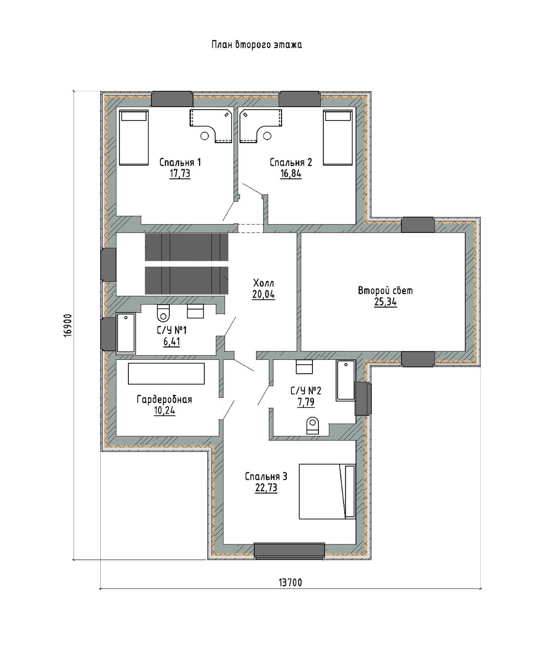 | Стены, перегородки | Газобетонные блоки, плотность D500. Стены 300 мм, несущие перегородки 200 мм. Остальные перегородки 150 мм. |