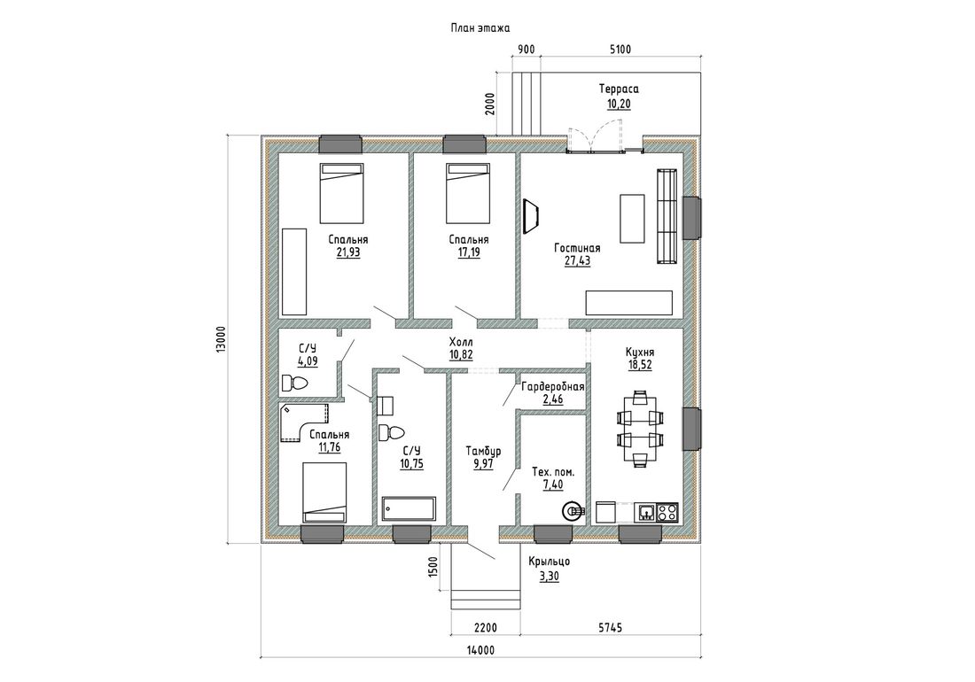 | Фундамент | УШП ( утеплённая шведская плита) - толщина утепления 100 мм., толщина монолитной плиты 250 мм. |