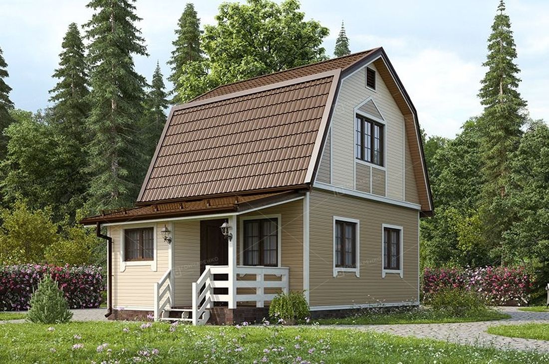 Дом под ключ с верандой всегда выглядит привлекательно и идеально подойдет для небольших участков. Однако он еще и функционален. Крыльцо защитит вас в непогоду, пока вы будете открывать дверь. Кроме того, на крылечке можно оставлять обувь или красиво расставить горшки с цветами. Сам дом имеет большую комнату для отдыха и кухню столовую. Это очень удобная планировка. При желании можно будет зонировать пространство.