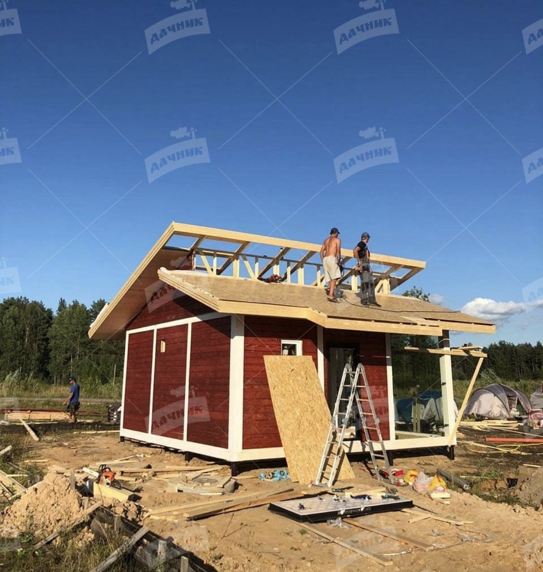 В посёлке Трубный нашими специалистами построен небольшой, но оригинальный и уютный домик площадью 36м2. Каркасные технологии позволили обойтись без закладки глубокого фундамента, что значительно ускорило и удешевило процесс строительства. Дом по схожему проекту можно построить в ИПОТЕКУ от 6%.